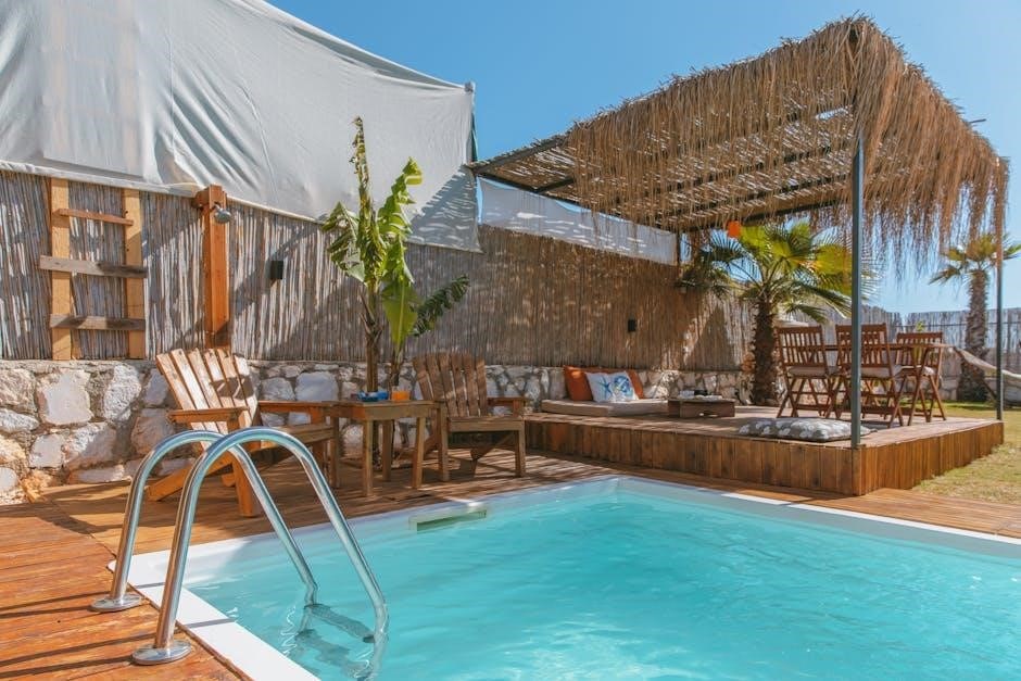 Remember to account for necessary clearances around the pool for safety and maintenance. Pool deck plans should clearly indicate these dimensions. Furthermore, consider the pool’s shape when determining the deck’s configuration. A well-planned deck seamlessly integrates with the pool, creating a cohesive and inviting outdoor oasis. Explore PDF resources for inspiration and detailed measurements.